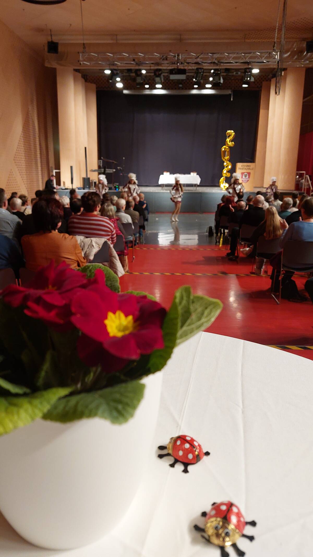 Trotz des plötzlich einsetzenden Schneefalls kurz vor dem Neujahrsempfang waren um 18 Uhr alle Plätze in der Paartalhalle voll besetzt und auch an den Tischen standen noch viele Gäste. Nach einem Sektempfang und der Rede des Ersten Bürgermeisters Reinhard Gürtner sprachen die beiden Landtagsabgeordneten Peter Tomaschko und Simone Strohmayr ein Grußwort. Besonders freute sich Reinhard Gürtner über den Wiederaufstieg der Kissinger Radballer in die Bundesliga. Diese Leistung war ihm einen Eintrag ins Goldene Buch der Gemeinde Kissing wert. Die Jugendgarde des FKM Lach Moro aus Mering zeigte ihren Gardetanz „Sky Full of Dance“. Danach spendierte die Gemeinde für alle Besucher und Besucherinnen bei Livemusik noch Häppchen und Getränke.