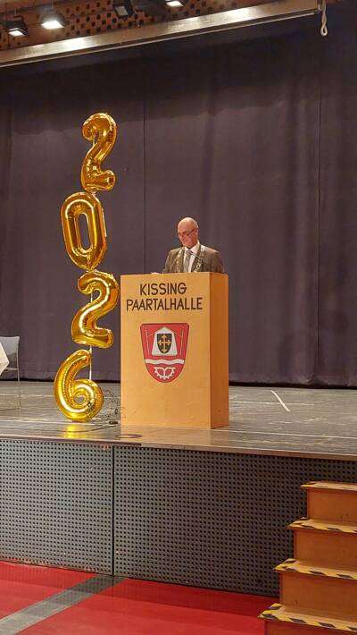 Erster Bürgermeister Reinhard Gürtner hatte zum Neujahrsempfang der Gemeinde Kissing eingeladen. Verantwortlich für die gelungene und gut besuchte Veranstaltung waren Ulrike Karsten und Stefanie Heim. Gürtner begrüßte die Vereine, das BRK Kissing, die Feuerwehr, die Polizei, Vertreter der beiden Kissinger Schulen, des Hauses Gabriel und der Stadtwerke Augsburg, den Altbürgermeister Manfred Wolf, den Kreisbrandrat Christian Happach und weitere Amtsträger. In seiner Ansprache ging er auf den Bürokratieabbau ein, der die bayerische Wirtschaft stärken soll. „Die Demokratie steht gerade von außen und innen unter Druck, sie ist aber Voraussetzung für Freiheit“, sagte Gürtner. Er erinnerte an Konrad Adenauer, der sich 1965 kurz vor seinem Tod für die Freiheit entschieden hatte. Als wichtigstes Prinzip der Politik bezeichnete Gürtner das Vertrauen, das durch Erfahrung, einen gut funktionierenden Staat und das Erleben von Freiheit entstehen kann. „Kissing ist belastbar und solidarisch“, sagte der Bürgermeister und erinnerte an die Krisen durch Corona und das Hochwasser. Im Jahr 2025 wurden viele Projekte verwirklicht und die Gemeinde konnte Schulden tilgen und allen Kindern einen Betreuungsplatz sowie ein attraktives Ferienprogramm und vier Spieletage anbieten. Viele Straßen und Wasserleitungen wurden saniert, die Peterskirche erhielt ein neues Turmkreuz und die IT der Gemeinde wurde für eine bessere Datensicherheit ausgelagert. Im neuen Gewerbegebiet möchte die Gemeinde innovative Unternehmen zur wirtschaftlichen Stärkung ansiedeln. „A Dream has come true - Ein Traum ist wahr geworden mit dem Beginn des Radwegs nach Hörmannsberg für eine größere Sicherheit von Schulkindern“, verriet Gürtner. Die Feuerwehr wurde stark gefördert, das neue Bürgerbüro eröffnete schon im Dezember. „Der Tag der offenen Tür wird noch nachgeholt“, versprach er. Das BRK Kissing und die Feuerwehr beglückwünschte er zu einem 3. Preis in Berlin bei 400 Mitbewerbern. In diesem Jahr möchte Kissing die kommunale Wärmeplanung und den sozialen Wohnungsbau fortführen und einen Inklusionsspielplatz einrichten. Für die Grundschule muss eine gute und richtige Entscheidung getroffen werden.