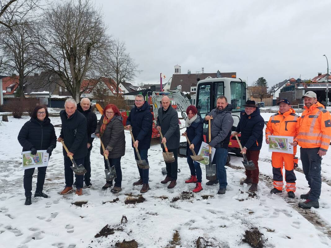 Mit dem Spatenstich startet in Kissing der Bau eines zentral gelegenen Inklusionsspielplatzes auf dem bereits bestehenden Spielplatz der Evangelischen Kirchengemeinde. Ziel ist es, einen Ort zu schaffen, an dem Kinder mit und ohne Beeinträchtigung selbstverständlich gemeinsam spielen können.